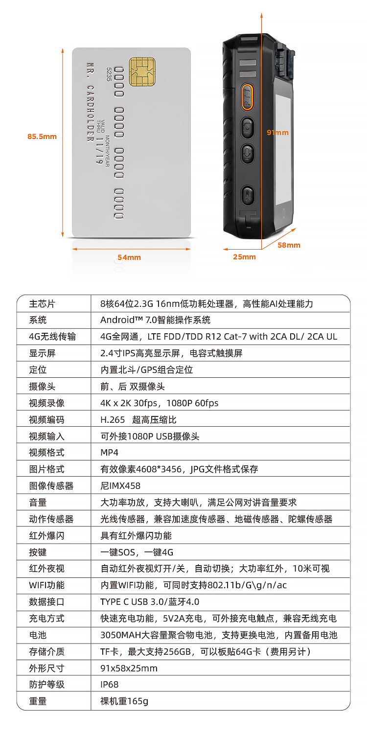 银翔DSJ-YXZY2A1高清视音频4G智能执法记录仪 自营