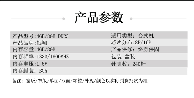 银翔(YIXG)DDR3 1600 4G 台式机内存条 全兼容 自营