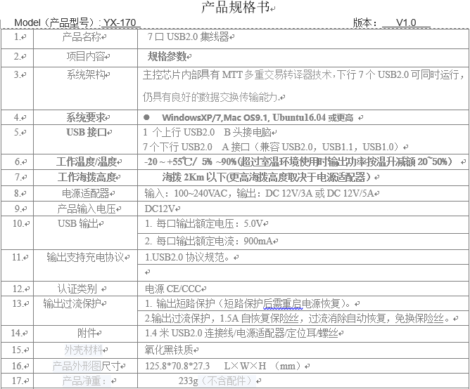 银翔 7口HUB USB2.0分线器带电源 电脑USB扩展器 自营