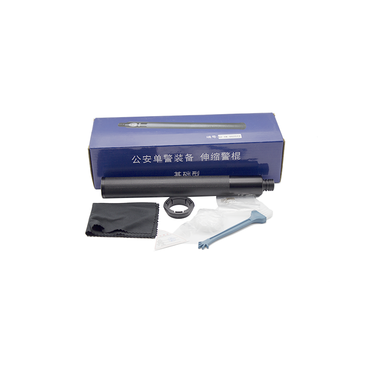 新型伸缩警棍具有击打、防护等功能,只需要按压尾部按钮旋推棍体即可缩回,解决了回缩不变的问题;采用军用材料,具有超强的击打性能和使用性能;采用全数控加工,生产工艺达到国际先用水平;设计了便携型、基础型、加强型三种型号。便携型伸缩警棍体积小、重量轻,适合便衣警察隐蔽携带;基础型伸缩警棍适用于普通民警日常执勤巡逻使用;加强型伸缩警棍具有更高的击打强度和抗弯能力,适合特警及维稳任务重地区民警使用.