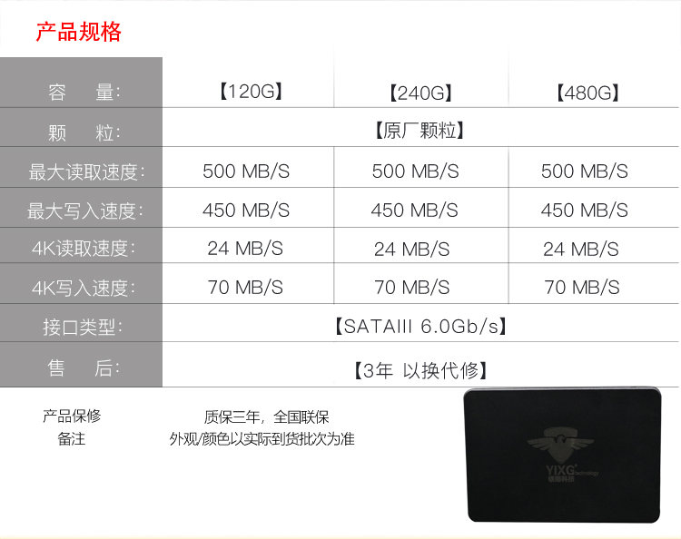 银翔 (YIXG)120G SATA3 SSD固态硬盘 笔记本台式机通用 自营