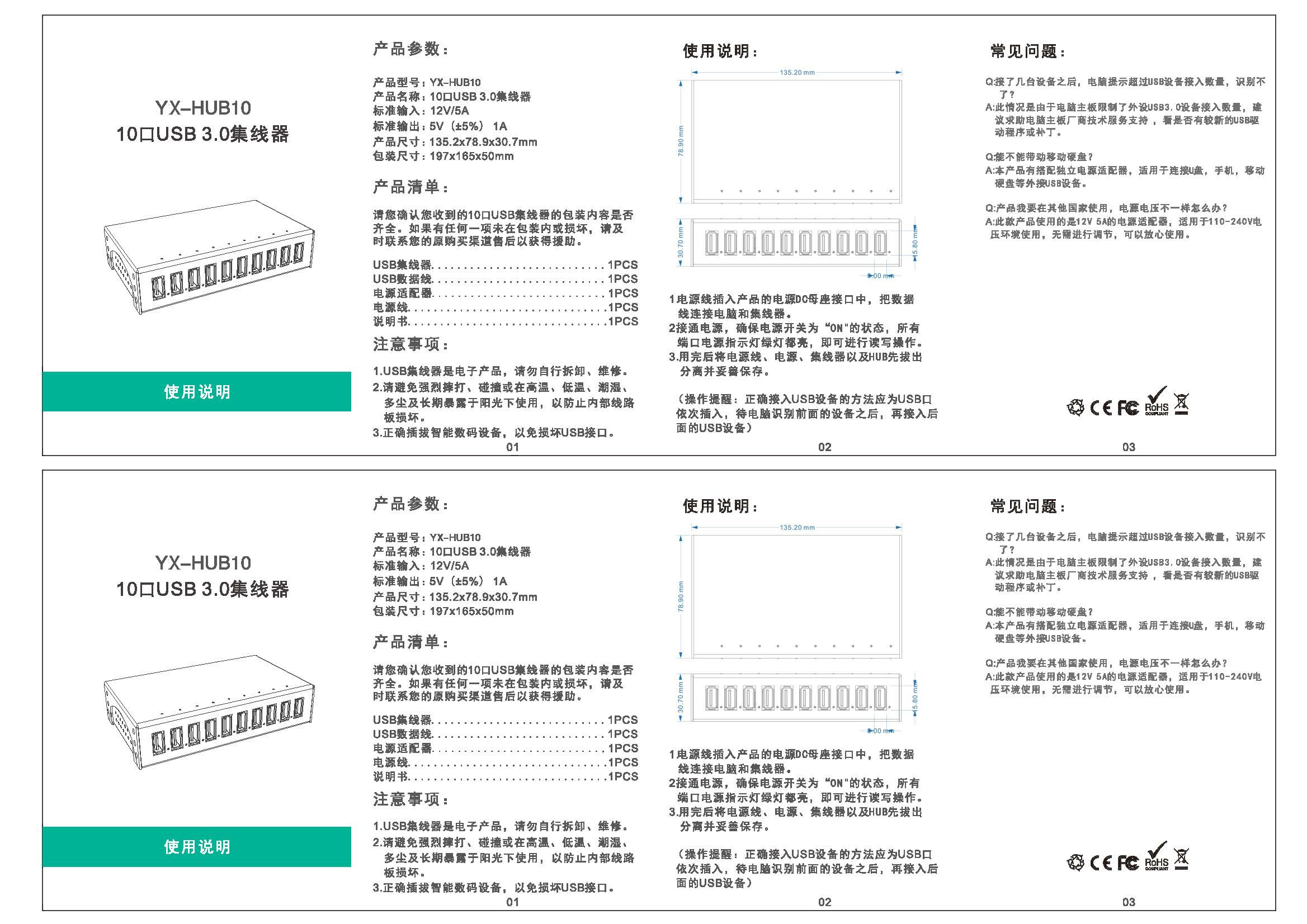 银翔 10口HUB USB3.0分线器带电源 电脑USB扩展器 自营